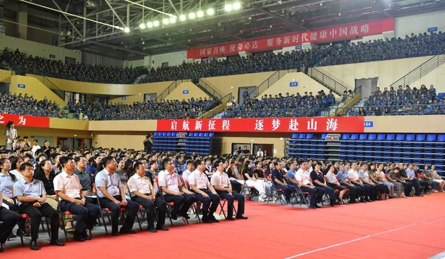 学校各部门、学院负责人,2025级全体新生,新进教职工、思政课教师、辅导员、在校生代表近四千人现场聆听。