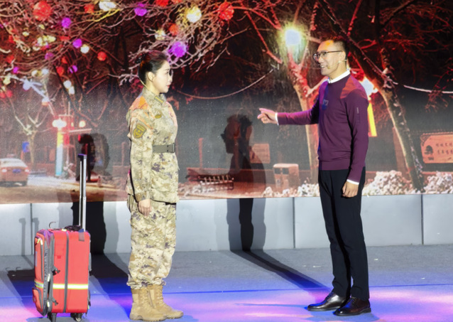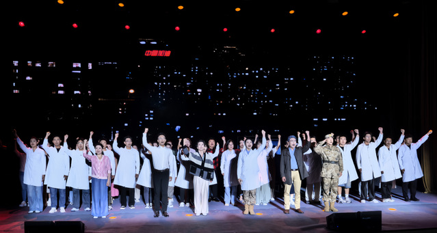 话剧走进医院,不仅是《别无选择》巡演的重要一站,更成为连接高校与医院、传递医学人文精神的新桥梁。它取材于山东第二医科大学建校74年以来诸多师生校友事迹,通过黄南星视角,将镜头拉回到唐山地震、长江洪水、汶川地震、抗击非典、支援西藏和抗击新冠等生死攸关时刻下,医务工作者奋不顾身的责任担当与家国情怀。张子苓以一生践行医者仁心,黄南星则如破土而生的新芽,在家人的感召下接过使命的接力棒,黄志鹏三次踏上雪域高原,最终将生命定格在援藏路上……这些角色以不同的生命姿态,共同谱写了一曲关于奉献与传承的医者赞歌,让观众在共情中触摸到医者的神圣与温度。两个多小时的演出精彩纷呈,掌声与哽咽声交织,演出结束后,仍有观众围着舞台交流感受,久久不愿离开。