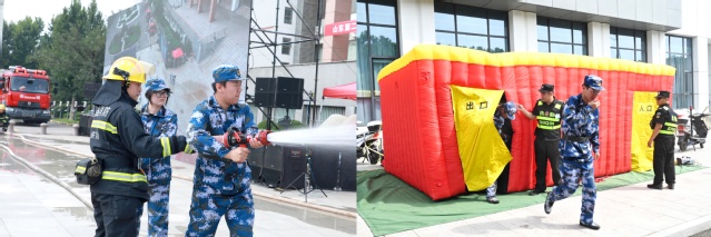 演练以学校总体消防安全应急预案为蓝本,坚持实战导向,精心设置了消防应急疏散、火灾扑救、高空喷水灭火、灭火器使用讲解及实战灭火五个环节,为师生提供知识培训和设备实操相结合的情景共创式学习体验。