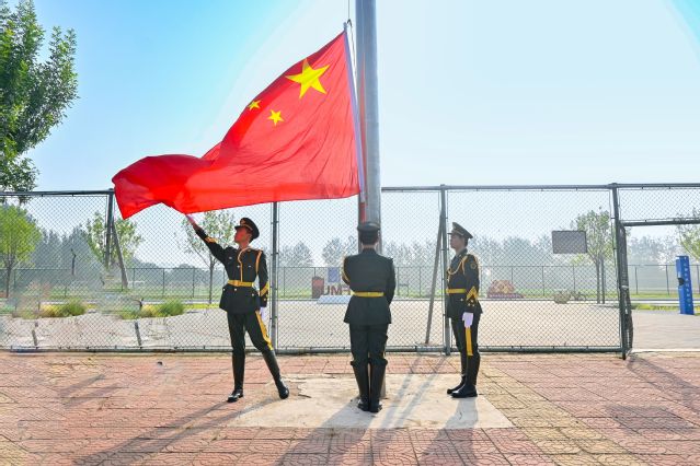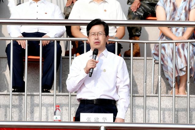大会在庄严的国歌声中拉开帷幕。校党委书记张建华宣布2025年学生军训汇报检阅式开始,并和与会领导一起检阅军训训练成果。