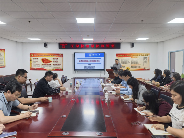 座谈会上,陈国荣教授带领团队到医学检验学院,围绕学科建设、科研协作等议题与学院师生深入互动,并举办专题讲座分享学科前沿内容。讲座中,贺晓鹏教授系统分享了其团队在糖质调控因子原位示踪与靶向干预领域的最新研究成果,其深入浅出地讲解赢得在场师生阵阵掌声。讲座结束后,贺晓鹏教授与学院青年教师展开热烈研讨,针对科研选题的精准定位、跨学科研究团队的搭建策略以及未来学术合作的具体方向等关键问题,交换了宝贵经验与思路,为双方后续开展实质性科研合作奠定了坚实基础。