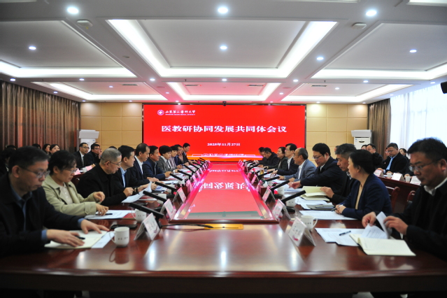 会议还审议了《紧密型医教研协同发展共同体建设工作方案》。学校将充分吸收与会人员意见建议,进一步完善方案后发文实施。下一步,校院将凝聚协同发展共识,健全高效运行机制,成立领导小组统筹推进重点项目落地;建立医疗质量、教学成效、科研产出三维评估体系,强化跟踪问效,持续扩充优质医疗资源,将共同体建设转化为推动医学教育改革、提升医疗服务水平、促进科研成果转化的战略支撑,为区域卫生健康事业高质量发展及健康中国、教育强国建设贡献力量。