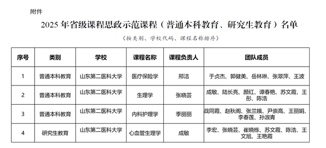 近日,学校课程思政建设喜获多项省级荣誉,《医疗保险学》等4门课程获批2025年省级课程思政示范课程,《防控布鲁菌,护航黄河流域生态美、产业兴、民生安》等8项案例入选2025年山东省本科高校黄河重大国家战略课程思政优秀案例,彰显了学校在课程思政建设与教学创新方面的扎实成效。